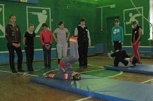 Мәктәпнең эчке контроль графигы нигезендә, физкультура укытучысы Малова Т.В. 6-7 класс укучылары белән“Лазанье по канату. Кувырок вперед и назад” дигән темага ачык дәрес үткәрде.