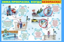 ❄ Соблюдайте правила дорожного движения в зимнее время. Будьте осторожными и внимательными во время движения по дороге. В зимнее время на дороге больше опасностей. Используйте свето-возвращающие элементы на одежде в темное время суток; дорогу переходите по пешеходной дорожке, на зеленый свет.