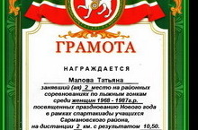 Физкультура укытучысы Малова Татьяна Виссарионовна яңа ел бәйрәменә багышлангын спартакиадада катнашып икенче урынны яулады.