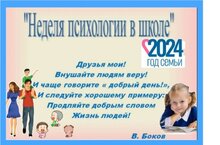 С 18 по 22 ноября 2024 года в МБОУ "Лякинская ООШ" школе проходит Неделя психологии, в рамках которой для учащихся организуются различные мероприятия, направленные на развитие навыков жизнестойкости, общения, социальной гибкости и дружелюбия. Мероприятия организуются на основе методических рекомендаций Министерства просвещения Российской Федерации и направлены на формирование благоприятного социально-психологического климата в учебном заведении.