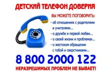 Детский телефон доверия (звонок анонимный) бесплатная горячая линия (оказание психозлогической помощи детям, подросткам и их родителям в трудных жизненных ситуациях):