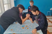 В рамках военно-патриотического месячника между командами "Факел" и "Монолит" прошли соревнования по армрестлингу