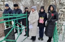 Сугышчан бурычын үтәгәндә һәлак булган авылдашыбыз Хисамов Мансур кабере янында.