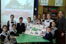 29 января учительницей Газизовой Г.Ф.был проведен классный час по теме «100 лет со дня образования ТАССР» для учащихся начальных классов. Вначале была проведена беседа об образовании ТАССР, также ребята познакомились с достопримечательностями, традициями, праздниками, символами Татарстана и особенностями культуры.Учащиеся сделали стенгазету «ТАССР -100лет». В процессе совместной деятельности по созданию газеты между детьми установились отношения дружбы и взаимопонимания.