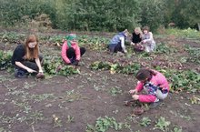 Коллектив көче белән мәктәп янындагы бакчада бәрәңге, кишер, чөгендер үстерелә. Бүген шуларны җыйдык.