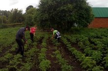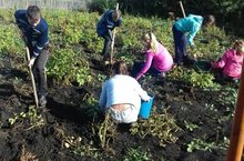 Бердәм көч белән мәктәп янындагы бакчада үстерелә торган бәрәнге төпләре күмелде, рәт аралары эшкэртелде.