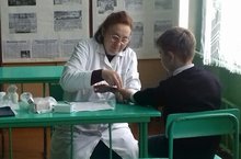 Медсестра Хузина Нурия Нил кызы мəктəпкə прививкалар ясарга керде. Балаларга прививканы грипка каршы да ясатырга кирəклекне аңлатты.