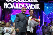 На Гала-концерте Суперфинала XXIV ежегодного открытого республиканского телевизионного молодежного фестиваля эстрадного искусства «Созвездие-Йолдызлык 2024» на сцене КРК «Пирамида» г.Казани Раис Республики Татарстан Рустам Нургалиевич Минниханов вручил почётную награду «Заслуженный работник культуры Республики Татарстан» Ландыш Соббуховне Нуретдиновой, преподавателю, художественному руководителю вокального ансамбля «Ихлас».