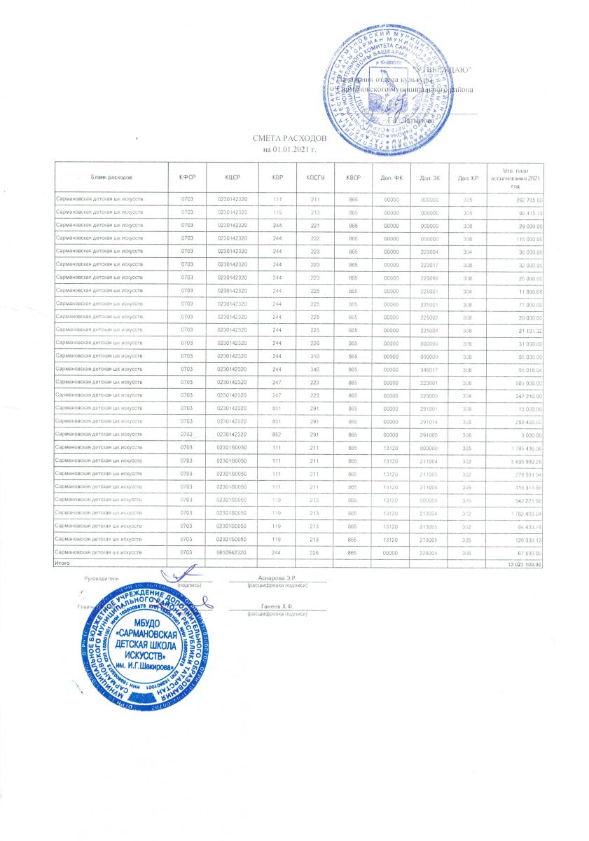Смета расходов на 2021 год