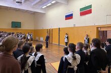 Утро понедельника в школе традиционно началось с торжественной линейки, церемонии вноса флага и исполнения гимна Российской Федерации.