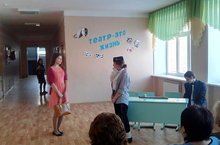 6 класс укучылары Т. Миңнуллинның “Кайда хаклык, кайда дөреслек?” комедиясен сәхнәләштереп күрсәттеләр. Класс җитәкчесе Гыймадиева Р.З.