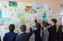 Мәктәптә 1-8 сыйныф укучылары арасында "Армия көннәре" дип исемләнгән юмористик рәсемнәр күргәзмәсе бара