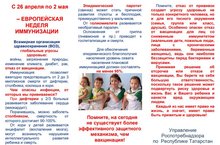 Управление Роспотребнадзора по Республике Татарстан (далее - Управление) информирует Вас о том, что по инициативе Всемирной организации здравоохранения в Европе, в том числе в Российской Федерации и в Республике Татарстан в период с 26 апреля 2 мая 2021 года проводится Европейская неделя иммунизации (далее ЕНИ-2021).