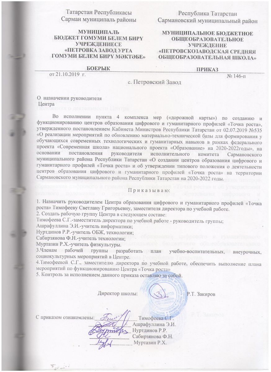 - Постановление "О создании центров образования цифрового и гуманитарного профилей "Точка роста"