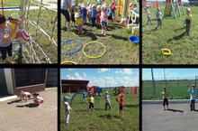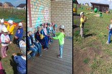 "Сандугач" балалар бакчасында балаларның прогулка вакыты күңелле һәм файдалы үтә: алар мавыктыргыч спорт уеннары белән шөгыльләнәләр.