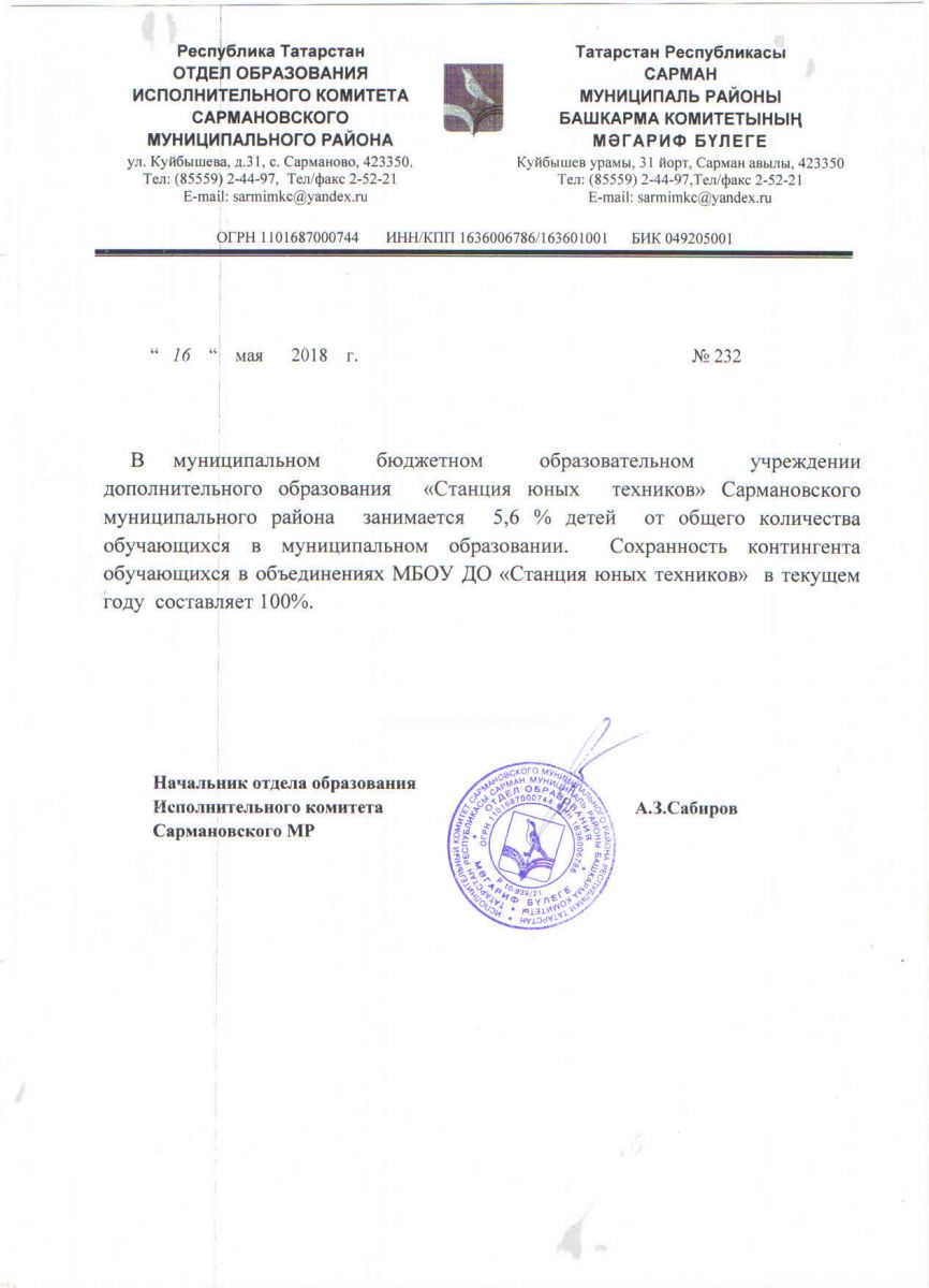 | Короткое название: | МБОУ ДО "СЮТ" Сармановского муниципального района РТ |