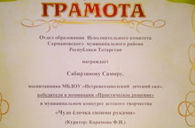 Грамота "Лучший уголок музыкальной деятельности в группе дошкольного учреждения" 10.12.2018