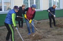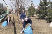 Санитар икеайлык кысаларында мәгариф бүлеге хезмәткәрләре территорияне җыештырырдылар.