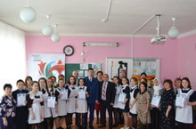 Мәгариф бүлеге җитәкчесе Сабиров Әлфәт Зиятдин улы Фирдәвис Мәгъдәнур улына район башлыгы Хөснуллин Фәрит Мөнәвир улы исеменнән рәхмәт хаты тапшырды.