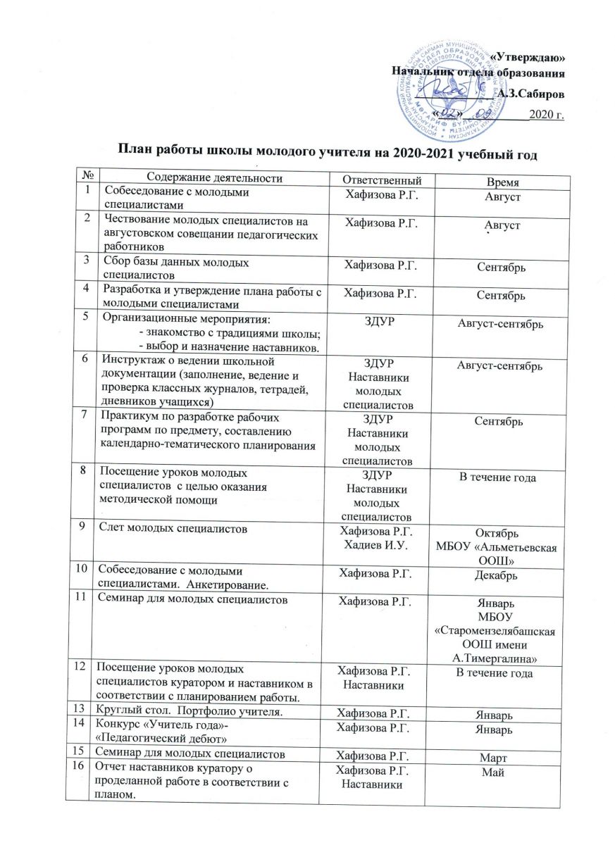 - План работы школы молодого учителя на 2020-2021 учебный год