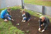 Укучыларыбыз бүген өмәгә чыктылар. Яз көне бакчада эш күп. Укучылар яшелчәләр утырттылар. Укытучыларыбыз да тик тормадылар: стадион яны территориясен чистарттылар, тәртипкә китерделәр. Балалар "Җиңү көне"нә дип чәчәклекне әзерләделәр, үзләре үстергән матур чәчәк үсентеләрен утырттылар. Мәктәбебез тагы да ямьләнеп китте.