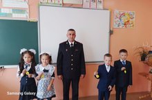 В рамках оперативно-профилактического мероприятия "Внимание - дети! В первый день нового учебного года сотрудник отделения ГИБДД отдела МВД России по Сармановскому району Ахатов Ф.Ф. провел беседу с первоклассниками о Правилах безопасного поведения на дорогах 01.09.2023