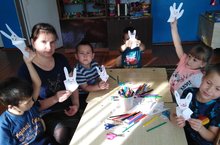 Кисеп ябыштыру эшчәнлегендә кул формасыннан куян ясау./ На занятии аппликации "Зайчик из ладошки". 23.10.2020