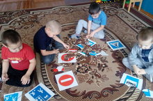 Кисәкләрдән юл билгеләрен җыябыз.Собираем дорожные знаки.