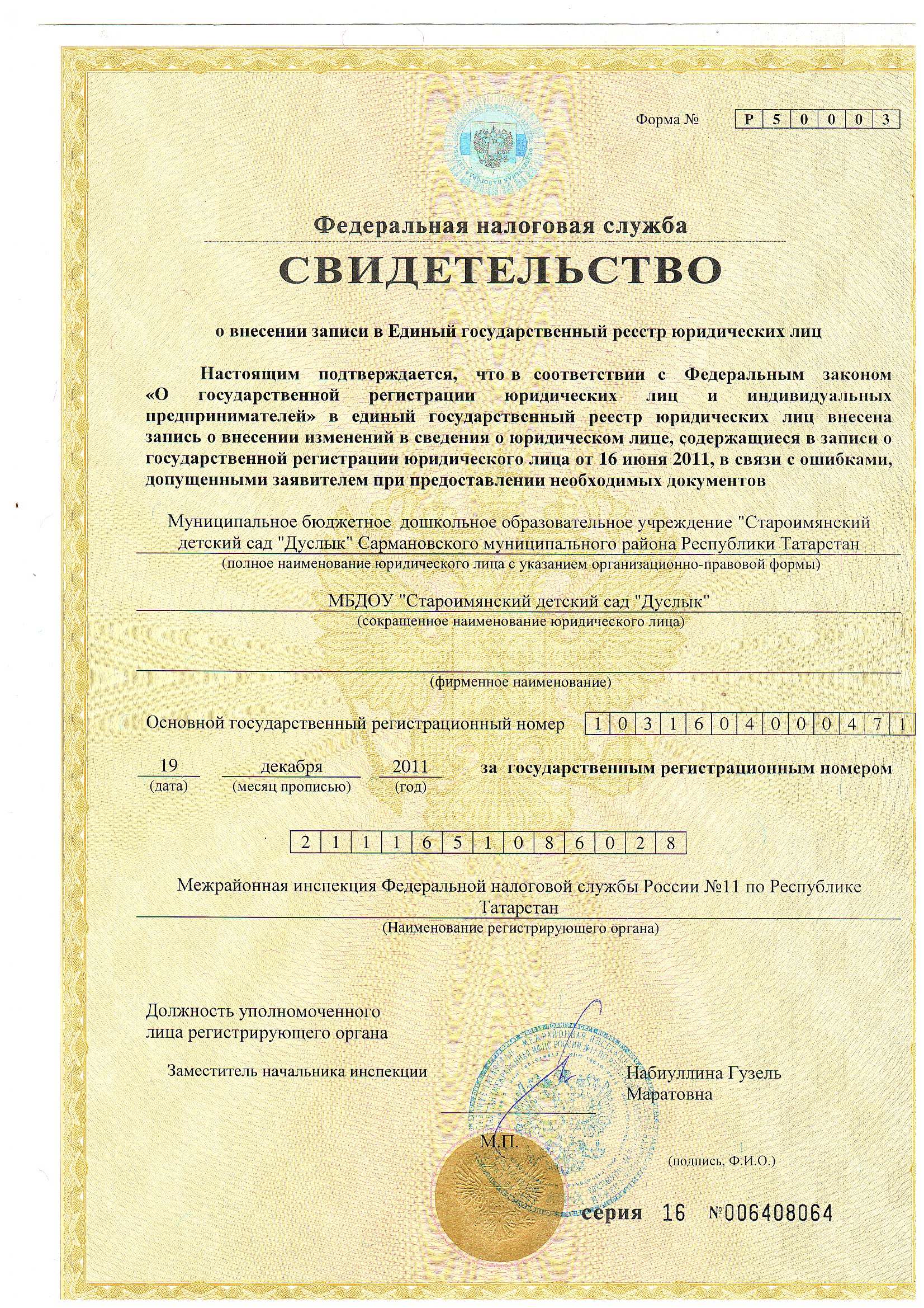 Короткое название: МБДОУ "Староимянский детский сад "Дуслык"