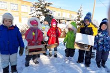 «Мы кормушку смастерили, мы столовую открыли...». Экоакция «Покормите птиц зимой». Вот и пришли первые морозы. Воспитанники дошкольной группы, решили первыми помочь птичкам и вместе с родителями сделали кормушки.