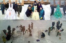 Яңа ел бәйрәмнәре якынлашу белән күңелле мәшәкатьләр көннән көн арта бара. Бүген кар сыннары ясадык.