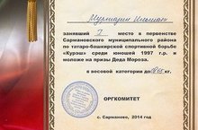 ПОЗДРАВЛЯЕМ! На Первенстве Сармановского района по татаро- башкирской спортивной борьбе «Курэш» на призы Деда Мороза среди учащихся района Муртазин Ильшат занял – 1 ое место. Молодец!!!!!!!