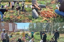 Көз - урып-җыю вакыты. Мәктәп бакчасында үстерелгән яшелчәләр мәктәп ашханәсендә укучыларны тукландыру өчен кулланыла.