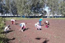 Работа на пришкольном участке требует большой отдачи и терпения. Дети работают с желанием и с пониманием необходимости приводить пришкольный участок в порядок.
