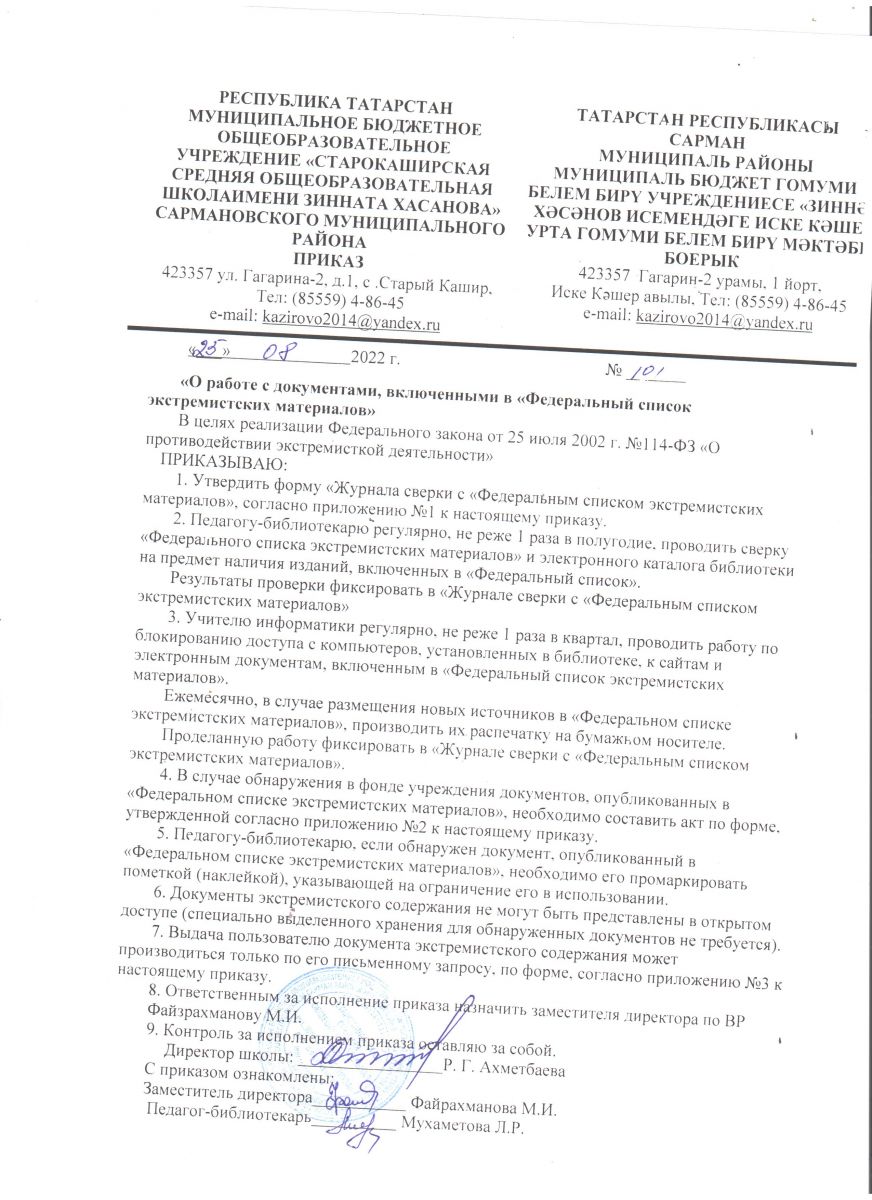 Приказ о работе с документами , включенными в Федеральный список экстремистических материалов