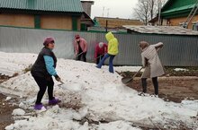 В рамках санитарно-экологического двухмесячника в школе провели субботники. Учителя и ученики убрали территорю школы.