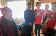 В рамках 80-летия Великой Победы, Года защитника Отечества во исполнение плана отдела образования "80 патриотических дел к 80-летию Победы" участники движений "Юнармия и " Движение Первых" нашей школы поздравили тыловика Гарифуллину Катифу Муталлаповну с наступающим праздником-День Победы. Они вручили Катифе Муталлаповне памятные подарки. Она поделилась воспоминаниями о тяжёлых годах войны, рассказала о работе в тылу .