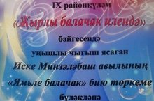 Район күләмендә үткәрелгән "Җырлы балачак илендә" смотр-конкурсында катнашып, яшь артистларыбыз I, II, III урыннар яулап кайттылар.\Наши молодые артисты заняли I, II , III места в районном смотр-конкурсе "Җырлы балачак илендә".