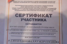 Мы стали победителем в номинации "Лучшая идея" конкурса "В мире сюжетно-ролевой игры" среди ДОУ Сармановского муниципального района. /Без Сарман муниципаль районы балалар бакчалары арасында үткәрелгән "Сюжетлы уеннар дөньясында" дигән конкурсның "Иң яхшы идея" номинациясендә җиңучеләр булдык
