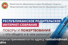 Республиканское родительское интернет-собрание на тему "Поборы и пожертвования - что общего и в чем разница?". 15 декабря 2017 года в 12.00 - 13.30 на сайте http://киу.рф