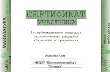 Сертификат участника Республиканского конкурса экологических рисунков "Экология в традициях"