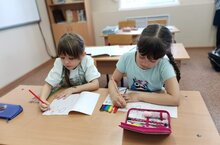 Наши будущие ученики, Алия и Рамиля, готовятся к поступлению в школу.