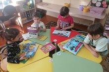 Балалар үзләренең яраткан китапларын карадылар,рәсемнәре буенча фикер алыштылар.