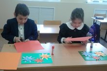 Укучылар бәйрәмгә тәрәзәләрне бизәделәр.
