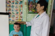 Фельдшер Хакимуллина Г.Р. балаларның сәламәтлеген һәрвакыт тикшереп тора. / Фельдшер Хакимуллина .Р. постоянно ведет наблюдение за состоянием здоровья детей.