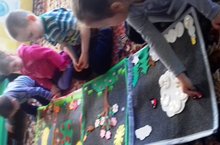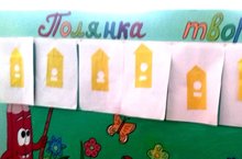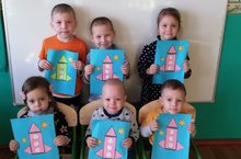 Бүген балалар кисеп ябыштыру шөгылендә сыерчыклар өчен оялар ясадылар./Сегодня дети выполнили творческие работы по аппликации: скворечник из готовых геометрических фигур.