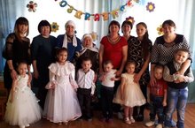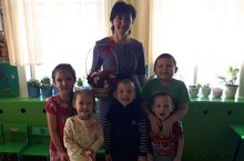 Буген безнен бакчабызда эшэуче тэрбияче - Каримова Золфирэ Равил кызынын куркэм юбилее, туган коне. Шушы унайдан балалар яраткан тэрбиячелэренэ рэсемнэр ясап булэк иттелэр, ак калач жырын башкардылар.
