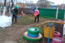 Балалар бакчасы территориясен яфраклардан, корыган чэчэклэрдэн чистартып, жирне кышка эзерлибез. Ап-ак кар яуганын туземсезлек белэн котэбез без!
