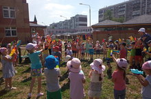 Сегодня в детском саду прошло мероприятие "День Воды". Прошла викторина "Всё о воде", дети активно участвовали, отвечали на вопросы. И в заключении под музыку устроили огромный фонтан. Дети были очень довольны.