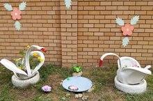 В детском саду прошёл конкурс "Лучший цветник". Каждая группа подготовила поделки на свои участки. Благодарим всех воспитателей, родителей и детей!!!
